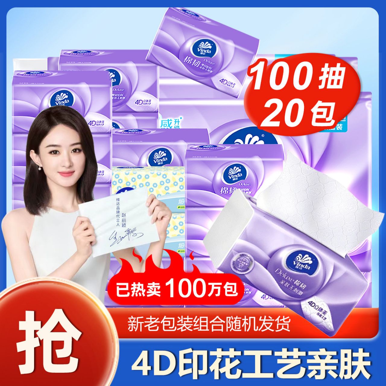 维达【超值100抽20包】组合抽纸家用实惠卫生纸巾箱餐巾纸整提面巾纸